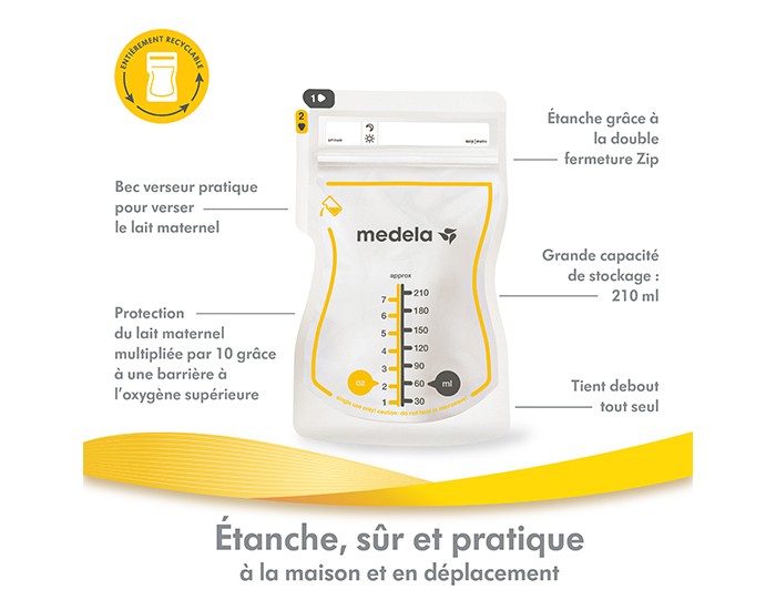 Les sachets conservation du lait maternel MEDELA offrent une solution pratique et hygiénique pour stocker le lait maternel en toute sécurité, garantissant ainsi le bien-être de votre bébé. Grâce à leur format compact et leur système de fermeture hermétique, ces sachets sont indispensables pour les jeunes parents soucieux de conserver et de transporter le lait maternel en toute simplicité.