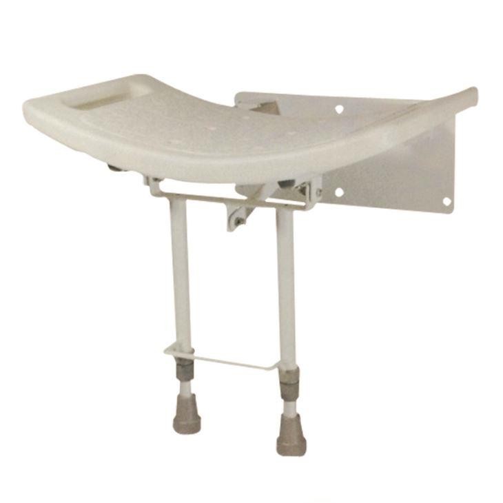 Siège de douche mural repliable offrant une assise sécurisée et stable grâce à ses pieds ajustables et son revêtement antidérapant. Facile à ranger et à utiliser, ce siège est idéal pour maximiser l'espace et faciliter l'accès à la douche, tout en offrant un maintien optimal grâce à ses poignées latérales.